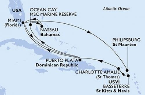 マイアミ / アンバーコーブ / サンファン / オーシャンケイのMSC海洋保護区 / ロアタン / コスタマヤ / コスメル
