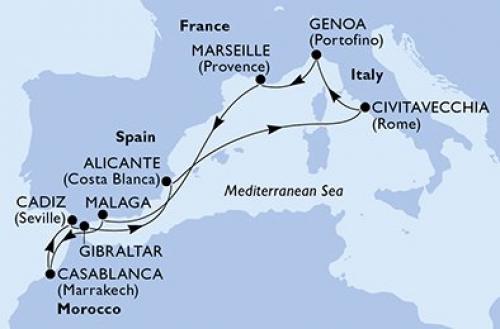 チビタベッキア/ローマ / ジェノバ / マルセイユ / マラガ / カディス / タンジール / セウタ / アリカンテ
