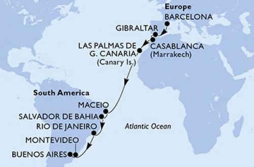 ブラックフライデーセール!12/10まで延長! 【テレビ紹介で話題の船会社!】 【オンライン予約可】MSCスプレンディダ号で行く 地中海クルーズ 18泊19日 -バルセロナ発(スペイン)ブエノス・アイレス着(アルゼンチン)-