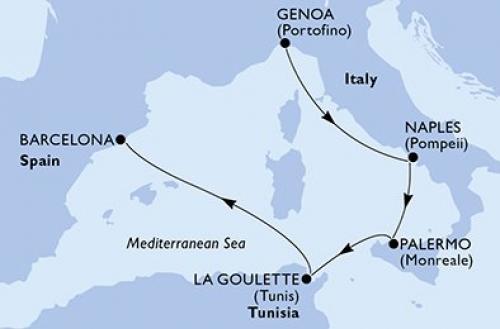 【総額1億円 スーパー還元お年玉セール】 【オンライン予約可】MSCスプレンディダ号で行く 地中海クルーズ 5泊6日 -ジェノバ発(イタリア)バルセロナ着(スペイン)-