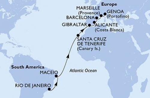チビタベッキア/ローマ / ジェノバ / マルセイユ / タラゴナ / カサブランカ / サンタ・クルス・デ・テネリフェ / サルバドール / リオデジャネイロ