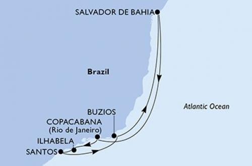 【テレビ紹介で話題の船会社!】 【オンライン予約可】MSCビルトゥオーザ号で行く 南米(ブラジル)クルーズ 7泊8日 -サントス発(ブラジル)サントス着(ブラジル)-