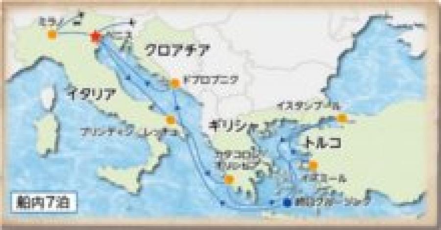 ベニス | [午 前]世界遺産ベニス観光。その後、港へ。 [午 後]乗船。 [16:30]出港。 【船中泊】 |