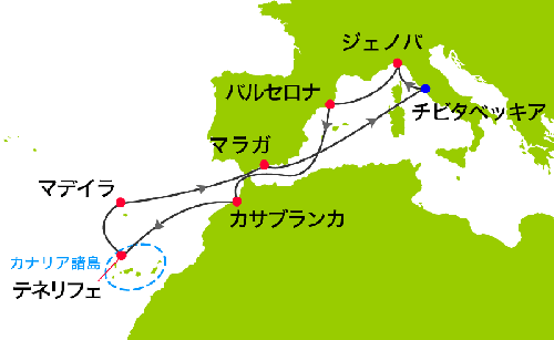 09:00 チビタベッキア(イタリア)入港 下船後、送迎車にてローマ空港へ ローマ発、空路、乗継便にて帰国の途へ |