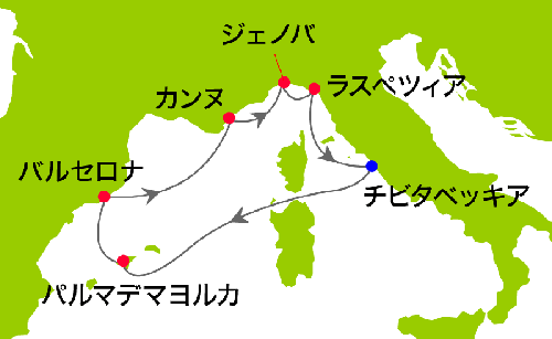 07:00 チビタベッキア(イタリア)入港 下船後、ローマ市内へ フリータイムをお楽しみください。 再集合後、空港へ ローマ発、乗継便にて帰国の途へ |