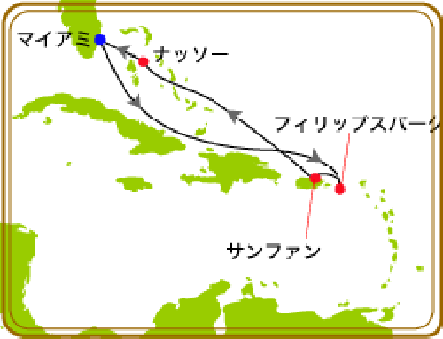 | 5 | 火 | フィリップスバーグ (セント・マーチン) | 08:00 | 18:00 | ○ | ○ | ○ | 船内泊 |