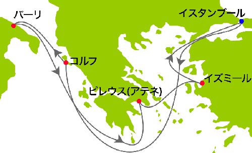 チビタベッキア/ローマ / メッシーナ(シチリア島) / バレッタ / バルセロナ / マルセイユ / ジェノバ