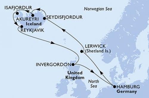 〈主要な寄港地〉 ハンブルグ / ラーウィック シェットランド諸島 / Seyoisfjorour / アークレイリ / イーサフィヨルズゥル / レイキャビク / インバーゴードン