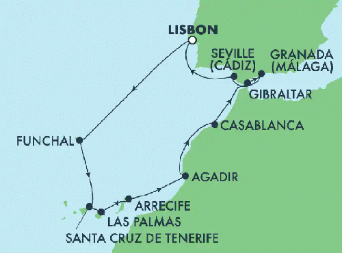 | 10日目 | ジブラルタル | 10:00 | 20:00 | 船内泊 |