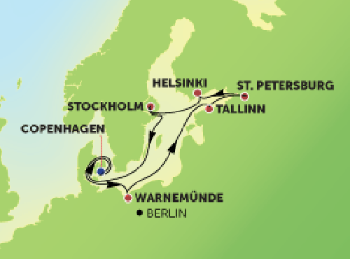 コペンハーゲン / スカーイェン / オスロ / グディニア / クライペダ / リガ / タリン / ヘルシンキ / ストックホルム / ヴィスヴュー/ゴットランド島