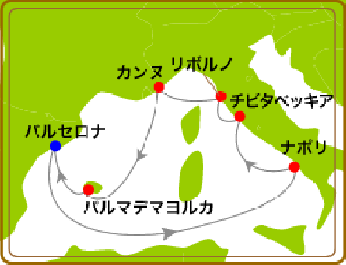 バルセロナ / マルセイユ / ジェノバ / リボルノ/フィレンツェ / バレンシア