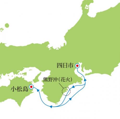 熊野大花火大会がメインのクルーズのため、17日の花火大会が翌日に延期となった場合は、寄港地(小松島)が変更となる場合もございます。