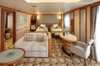 表示料金 掲載されている旅行代金は、グループ3とデラックスシングルを除き、1室を大人2名様でご利用いただく際のお1人様あたりの旅行代金です。 シングル利用 各クルーズ代金に下記の割合を乗じた金額となります。 *ご利用いただける客室数には限りがあります。 スーペリアステート/コンフォートステート/スタンダードステート・・・150% デラックスベランダ/デラックスツイン/ビスタスイート/ジュニアスイート・・・160% グランドスイート・・・200% 3人目料金 コンフォートステート(グループ3)以外の客室を3名様で利用される場合の代金 次の客室に限り3人目の代金は、各クルーズの旅行代金に下記の割合を乗じた金額となります。 スーペリアステートの一部/スタンダードステート 60% ビスタスイートの一部 80% 子供料金 子供料金は、大人代金の75%となります。 *中学生以上はは大人代金です。 *生後6ヶ月以上2歳未満の幼児は大人1名様につき1名様無料です。(食事・ベッドなし) 別途手配について 往復航空券、ホテル、送迎の手配も承ります。 お気軽にご相談ください。 ご注意