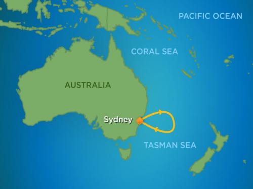 〈主要な寄港地〉 シドニー(オーストラリア) / メルボルン / ホバート(タスマニア島) / フィヨルドランド国立公園 / オーバン / ティマル / カイコウラ / ポイヤック / ネイピア / オークランド