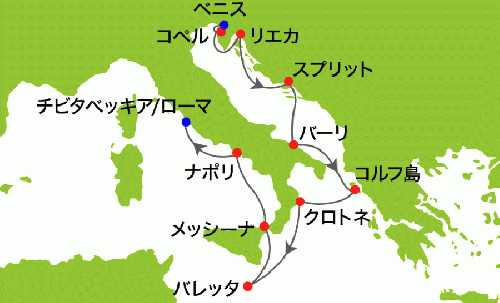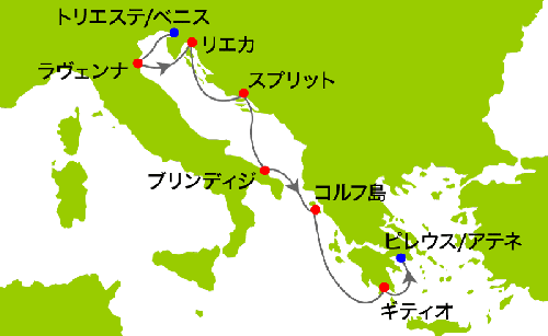 | 出発地 | 成田空港発または羽田空港発 / 成田空港または羽田空港着 / エーゲ海・アドリア海 | ||
