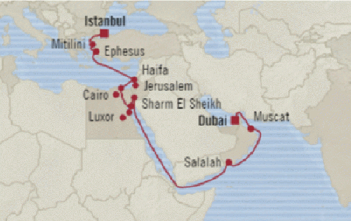 イスタンブール / クサダシ / ハイファ / ポートサイド / スエズ運河 / シャルムエルシェイク / サファガ / アカバ / マスカット / ドバイ