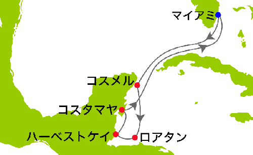 08:00 コスタマヤ (メキシコ) 入港 チャクチョーベン マヤ遺跡半日観光*2 18:00 コスタマヤ (メキシコ) 出港 |