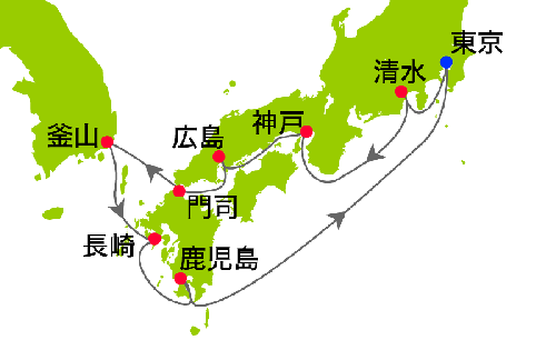 東京 / 清水 / 神戸 / 広島 / 釜山 / 長崎 / 鹿児島