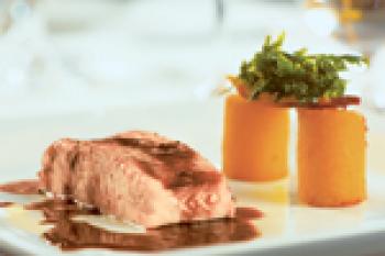 ディナーはメインダイニングでのフルコース、日替わりメニューの中からお好きな前菜、スープ・サラダ、メイン、デザートを選んで頂く方式です。