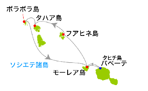成田空港(17:40)発、エア・タヒチ・ヌイ77便にてパペーテへ パペーテ(09:25)着後、パペーテ半日観光 ○大統領府 ◎カテドラル ◎市庁舎 ◎マルシェ ◎バイマショッピングセンター ご昼食の後、港へ 『ポール・ゴーギャン』 乗船 (15:00予定) 23:55 パペーテ (タヒチ島/ソシエテ諸島) 出港 |