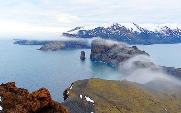 南極半島 〈南極半島の4日目の見どころ予定〉 南極半島の近海に連なる島のひとつ、デセプション島 |