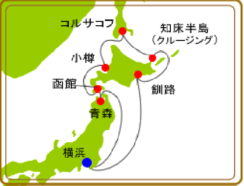 横浜 / 秋田 / 伏木富山港 / 敦賀 / 境港 / 釜山 / 長崎