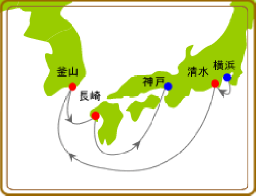 横浜 / 秋田 / 伏木富山港 / 敦賀 / 境港 / 釜山 / 長崎
