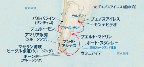 | 5日目 | プエルト・マドリン(アルゼンチン) | 08:00 | 18:00 |