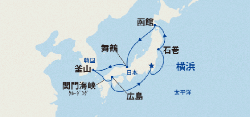 | 1 | 9/9 (月) | 横浜 | 午後乗船 | 17:00 |