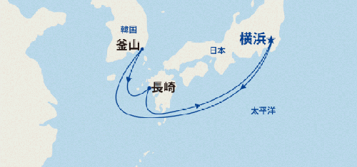 横浜 / 神戸 / 基隆(台北) / マニラ / ボラカイ島/フィリピン / コタキナバル(ボルネオ島) / シンガポール / レムチャバン(バンコク) / ホーチミン / ハロン湾 / 香港