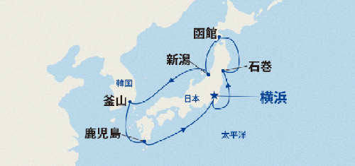 * 入港(到着日)は入港時間から下船まで約3-4時間かかりますので、航空券や新幹線や送迎などのお手配のお時間にお気を付けください。