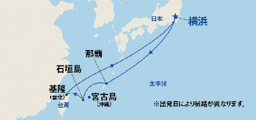 横浜 / 神戸 / 基隆(台北) / マニラ / ボラカイ島/フィリピン / コタキナバル(ボルネオ島) / シンガポール / レムチャバン(バンコク) / ホーチミン / ハロン湾 / 香港