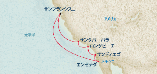 | 3日目 | サンタバーバラ(アメリカ) | 07:00 | 18:00 |