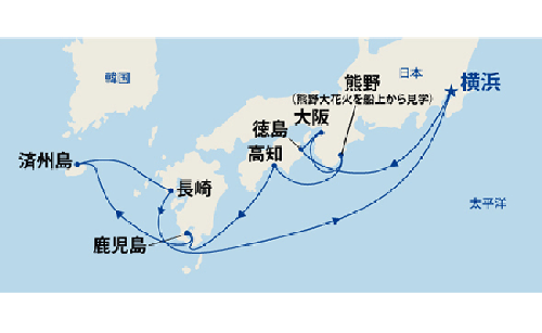 横浜 / 鹿児島 / 宮古島 / 香港 / ハロン湾 / ダナン / ホーチミン / シアヌークビル / シンガポール / バンダルスリブガワン / コタキナバル(ボルネオ島) / 那覇 / 横浜