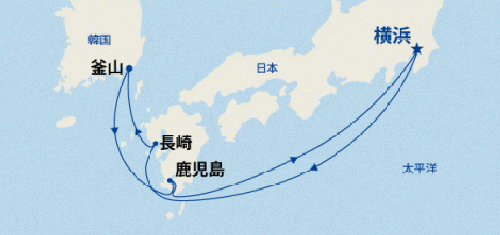 横浜 / 鹿児島 / 宮古島 / 香港 / ハロン湾 / ダナン / ホーチミン / シアヌークビル / シンガポール / バンダルスリブガワン / コタキナバル(ボルネオ島) / 那覇 / 横浜