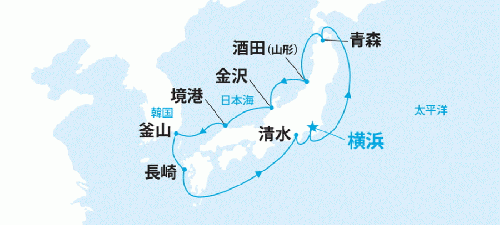 横浜 / 青森 / 酒田(山形) / 金沢(石川県) / 境港 / 釜山 / 長崎 / 清水