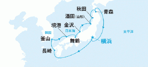 横浜 / 長崎 / 釜山 / 境港 / 金沢 / 酒田(山形) / 秋田 / 青森