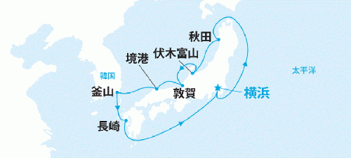 横浜 / 秋田 / 敦賀 / 境港 / 釜山 / 長崎