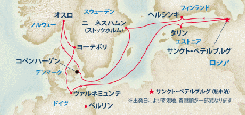 コペンハーゲン / スカーイェン / オスロ / グディニア / クライペダ / リガ / タリン / ヘルシンキ / ストックホルム / ヴィスヴュー/ゴットランド島