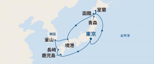 * 入港(到着日)は入港時間から下船まで約3-4時間かかりますので、航空券や新幹線や送迎などのお手配のお時間にお気を付けください。