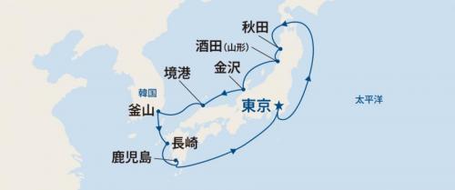 東京 / 秋田 / 酒田(山形) / 金沢(石川県) / 境港 / 釜山 / 長崎 / 鹿児島