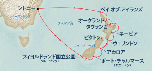 シドニー(オーストラリア) / ミルフォードサウンド / フィヨルドランド国立公園 / ダニーデン / クライストチャーチ / ウェリントン / ネイピア / ギズボーン / タウランガ / オークランド / ベイオブアイランズ