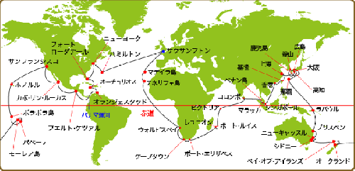 日付変更線通過 (日付が一日進みます) | - | - | ○ | ○ | ○ | 船内泊 |