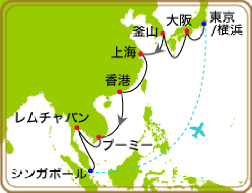 旅行条件食事 船50回 添乗員 同行 / 横浜港から成田または羽田空港帰着まで 最少催行人員 15名様 利用予定航空会社 シンガポール航空、全日空、日本航空 ご注意