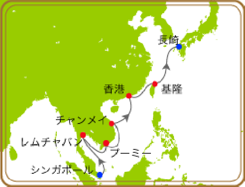 シンガポール / レムチャバン(バンコク) / チャンメイ / 香港 / 長崎