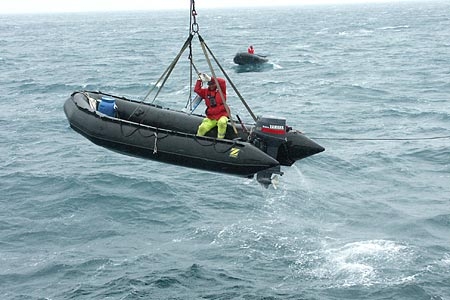 避難訓練には乗組員も参加し、避難の手順を確認します。