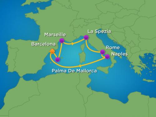 バルセロナ / パルマデマヨルカ / マルセイユ / ラスペツィア / チビタベッキア/ローマ / ナポリ