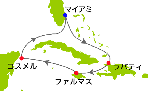 08:00 コスメル (メキシコ) 入港 船会社主催オプショナルツアーや、フリータイムをお楽しみください。 19:00 コスメル (メキシコ) 出港 |