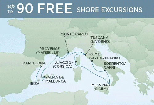【総額1億円 スーパー還元お年玉セール】 リージェントセブンシーズ ボイジャーで航く きらめくイビザから豪華なカプリ島まで 11泊12日 バルセロナ発~ローマ(チヴィタヴェッキア)着