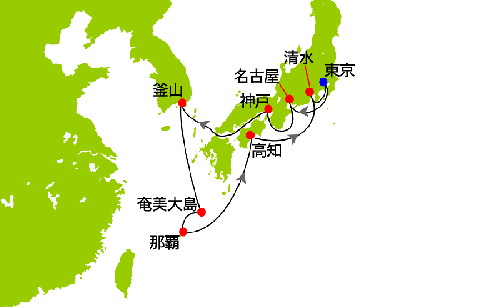 10:00 清水(日本)入港 19:00 清水(日本)出港 |